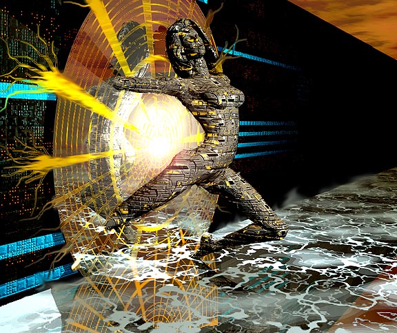 This piece was my first 3d rendering using Poser 4, Bryce,